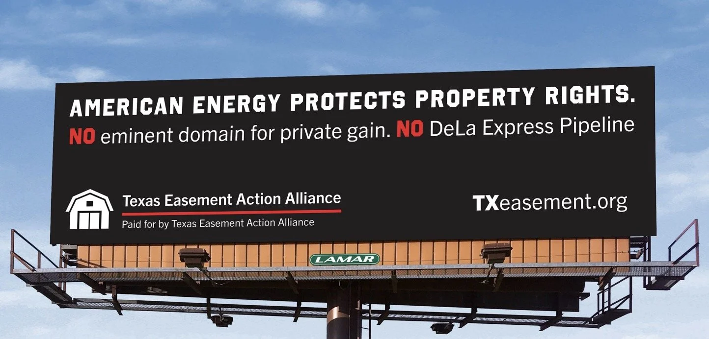 Texas Easement Action Alliance Launches Billboard Campaign: No Eminent Domain, Stop The DeLA EXpress Pipeline
